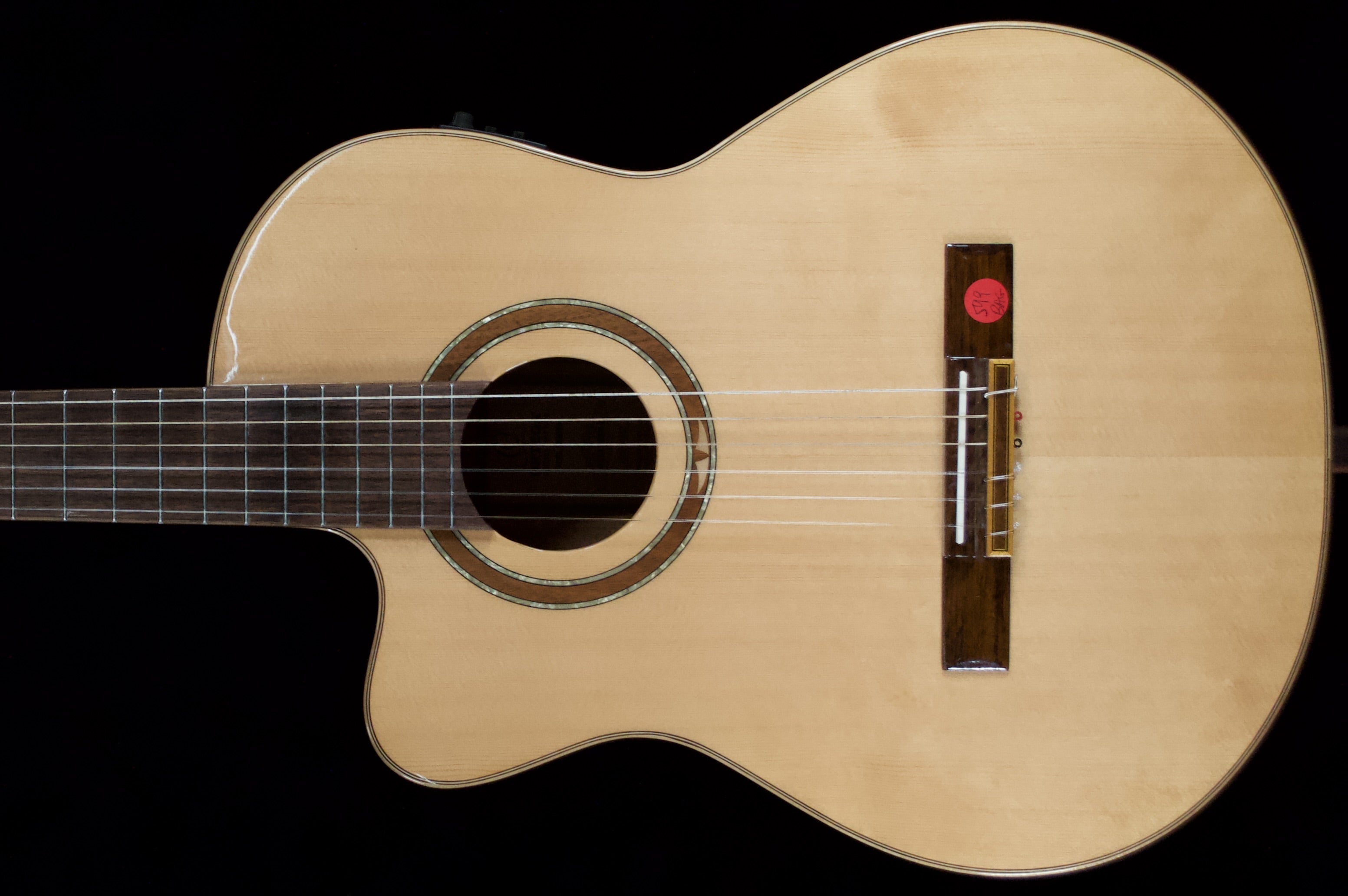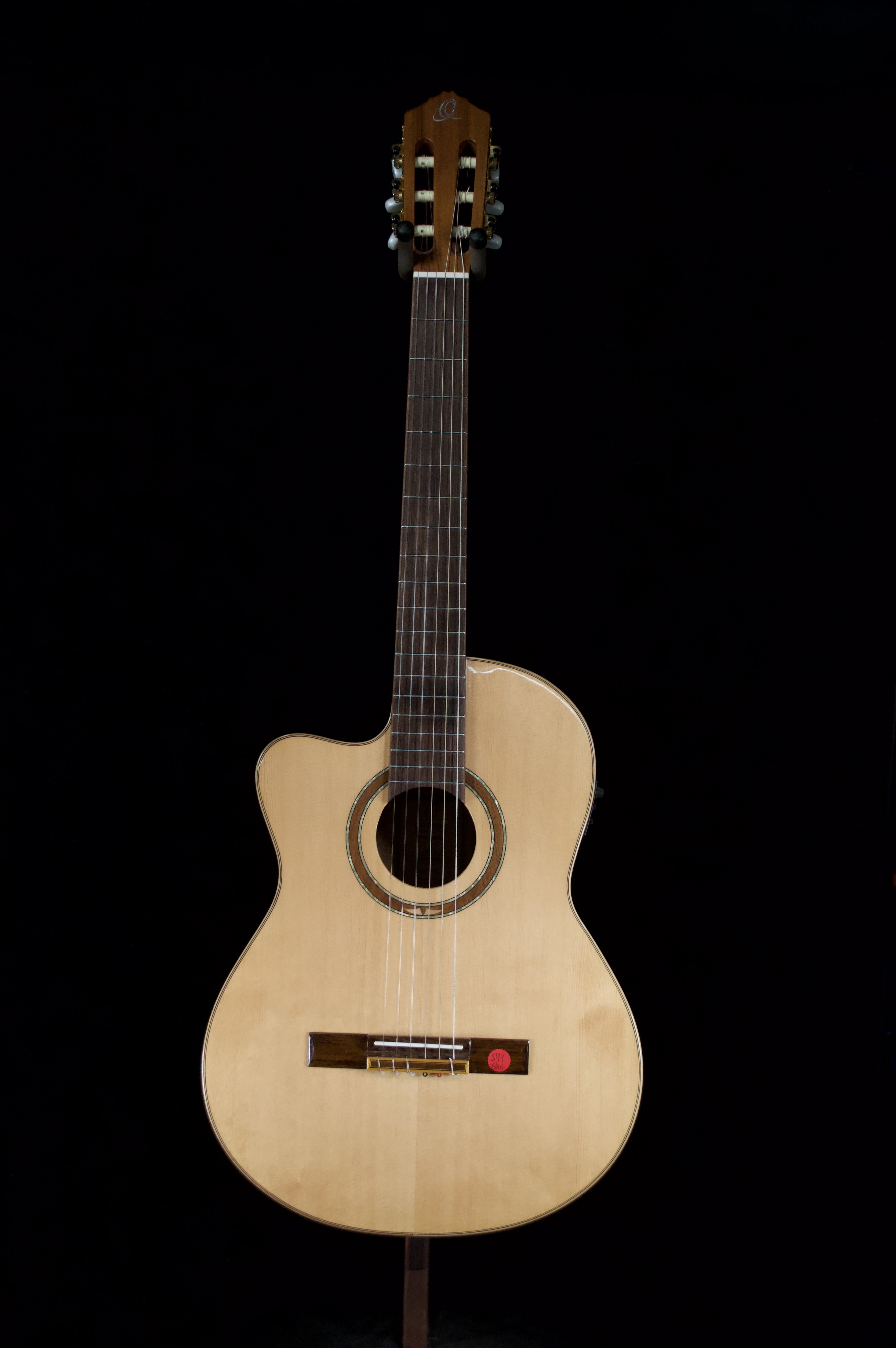 Ortega RCE138SNL. Lefty Solid top Cutaway Classical with onboard electronics and tuner. 4/4 Size. Deluxe bag. $599