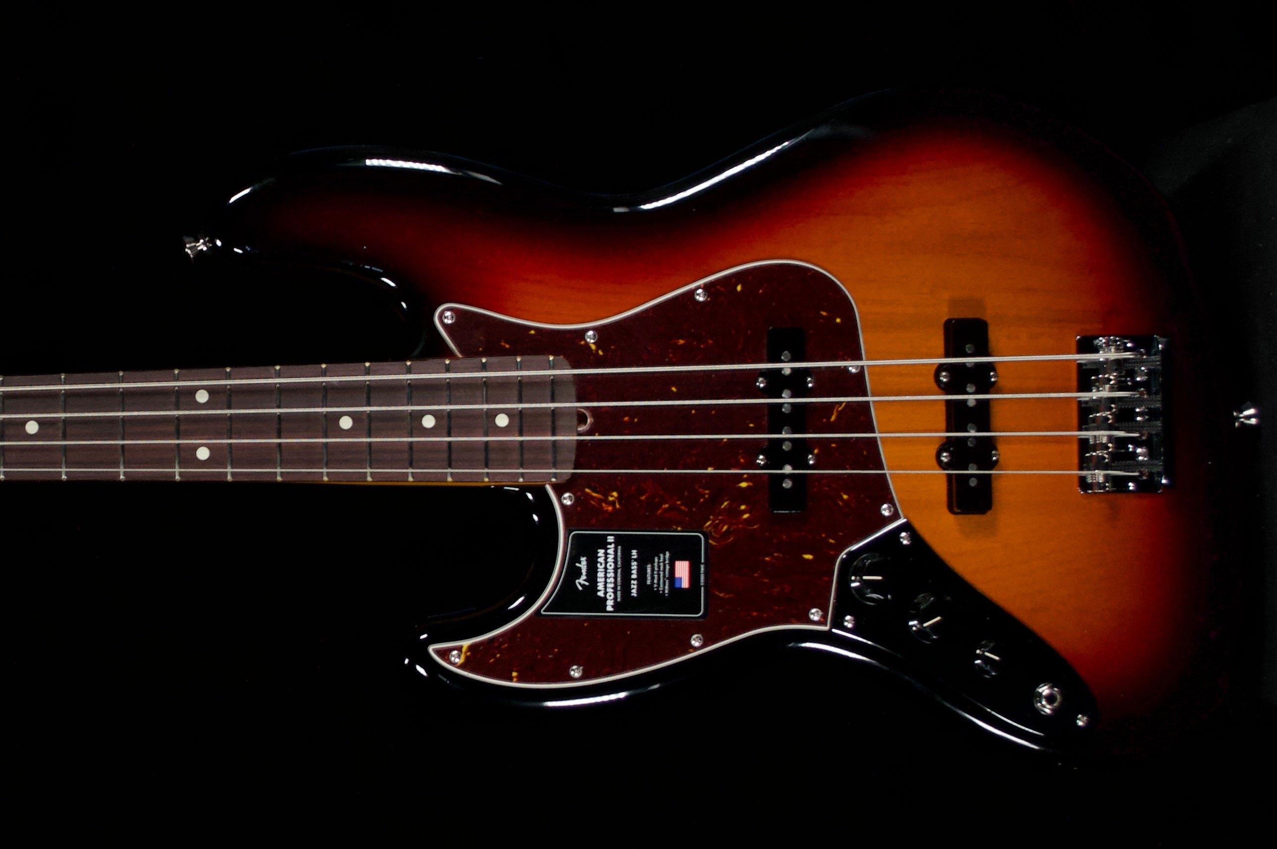 Fender American Pro 2 Limited Jazz Lefty Bass in 3 Tone Sunburst.