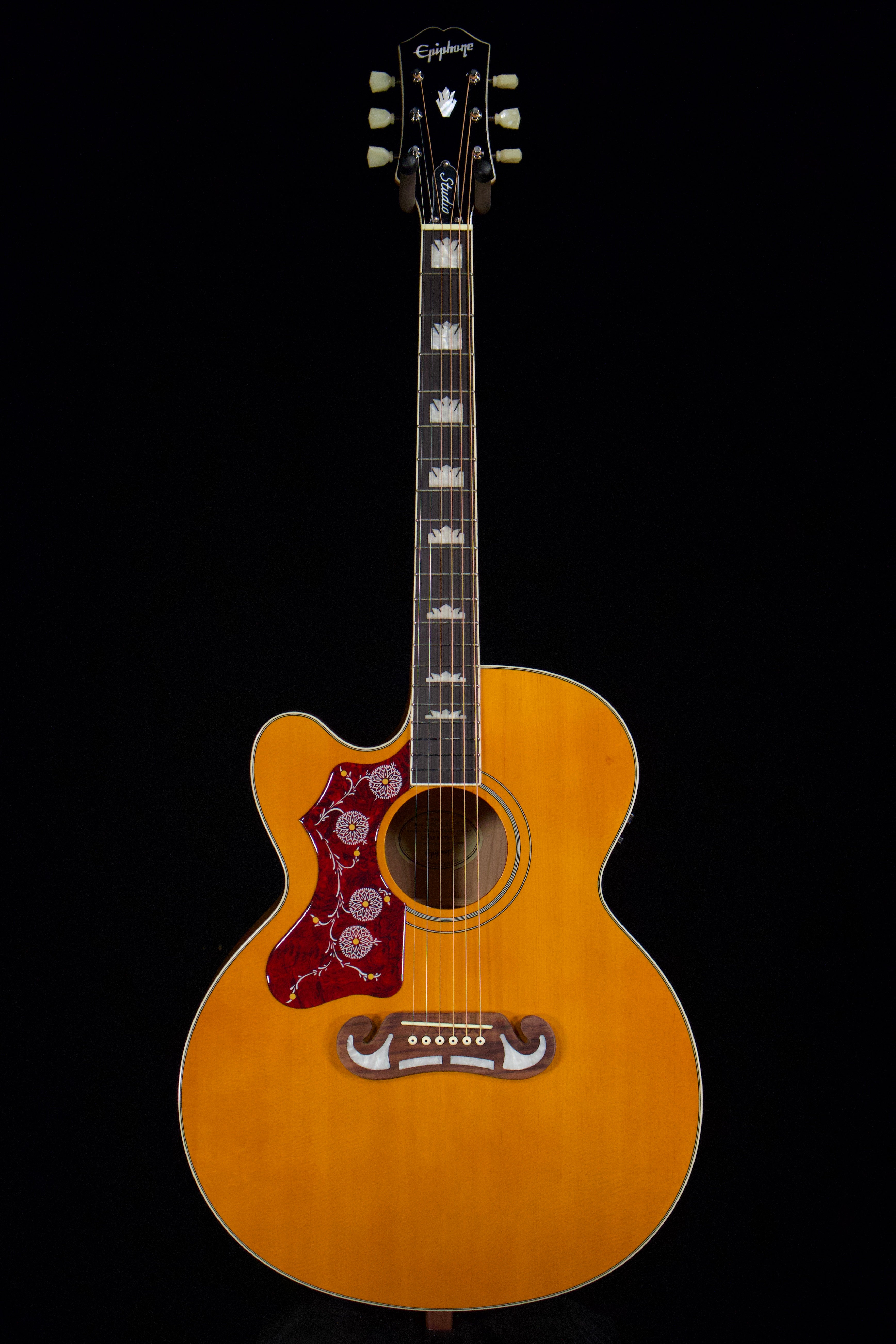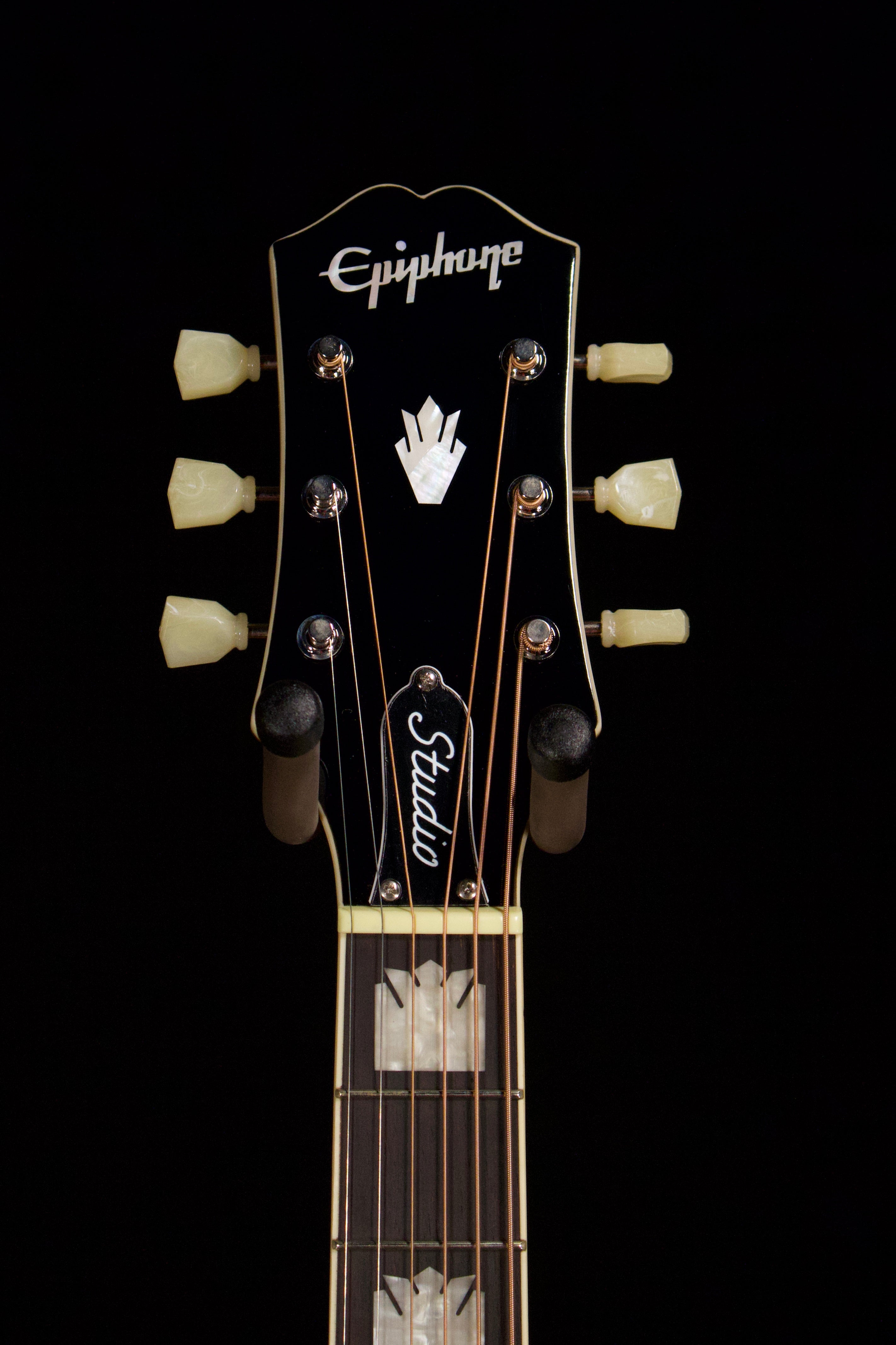 Headstock InlayModern Epiphone script logo in Mother of Pearl, Gibson™ Crown inlay in Mother of Pearl