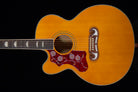 The Left-Handed Epi J-200 EC pays homage to the King of the Flattops - the classic Gibson™ SJ-200. This Inspired by Gibson Epiphone features a cutaway Super Jumbo body with select maple back and sides, solid spruce top for outstanding tone, a smooth-playing hard maple neck with a SlimTaper™ D profile, pau ferro fretboard, 20 medium jumbo frets, and classy pearloid crown inlays. The bridge has the legendary Moustache™ shape and the pickguard features iconic J-200™ graphics. Comes equipped with a Fishman® Sonicore™ under-saddle pickup and Presys™ preamp with built-in tuner. A battery is not included. To power your pickup, you will need a 9-volt battery. (Previously called Epiphone EJ-200SCE Acoustic/Electric)