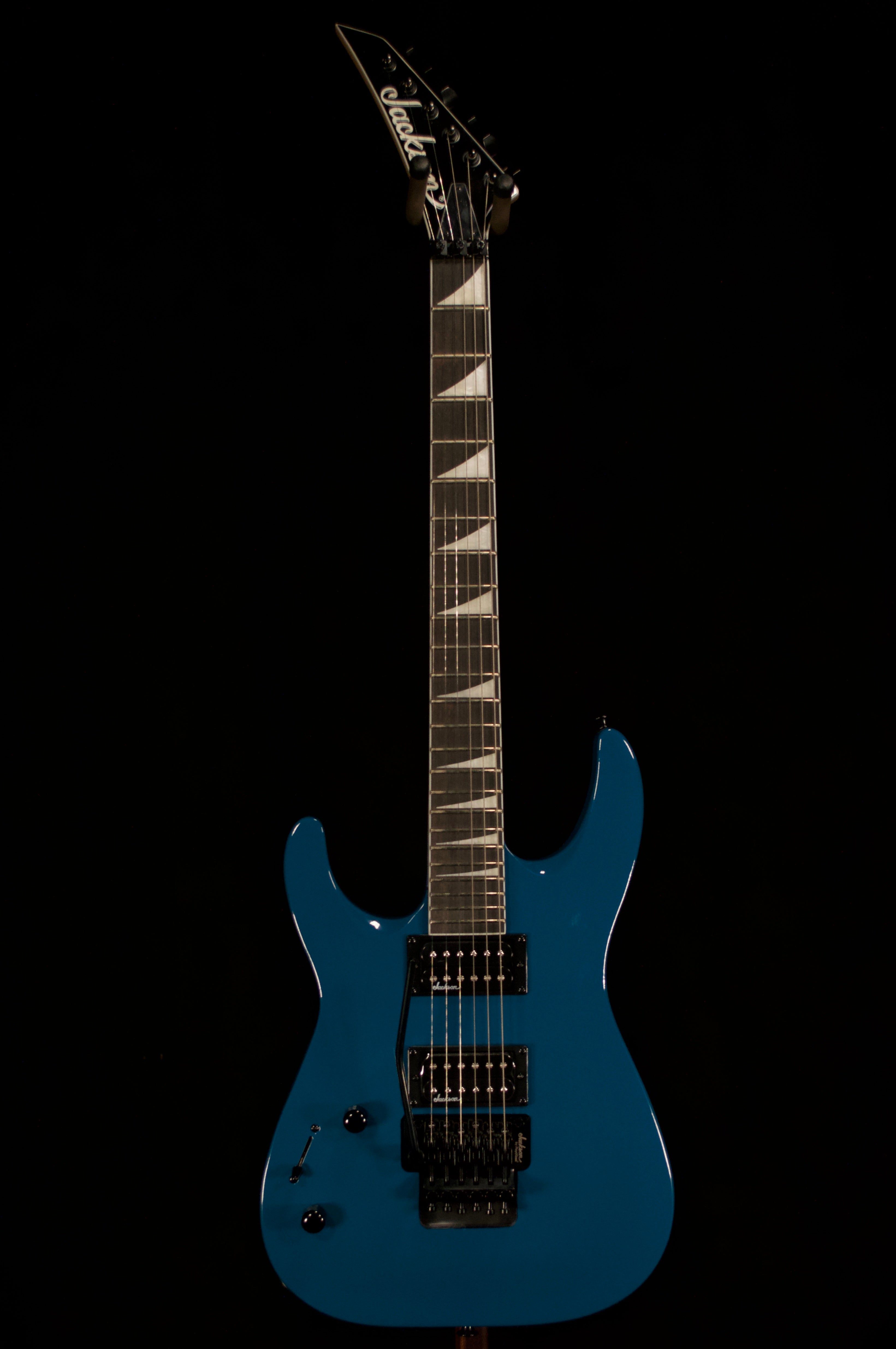 The Jackson JS32 Dinky left-handed solidbody electric guitar gives you instant attitude both sonically and visually. The amazingly affordable JS32 Dinky serves up thick, snarling tone and prodigious sustain, courtesy of its resonant, lightweight poplar body, arched top, and two toasty humbuckers. You'll relish in the uber-playability of the maple speed neck. The fully bound compound-radius fretboard is great for chording and shredding without fretting out. A real Floyd Rose licensed double-locking tremolo bridge rounds out the picture, making the Jackson JS32 Dinky a guitar any serious player can love. Bright blue finish